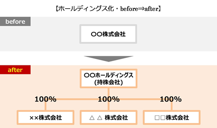 本稿をお読みの皆様の中には、「最近知り合いの社長の会社が、ホールディングス化(※以下HD化と表記)したんだよね」といった会社も多いのではないでしょうか?ホールディングス制度は「持株会社制度」とも表現されますが、簡潔に申しますと傘下の会社の株式を一定以上保有している会社がホールディングス会社となります。