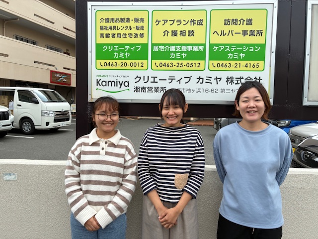 ※写真:ミャンマーからの介護ヘルパー(左: プインサン 中:リン 右: 星野管理者)