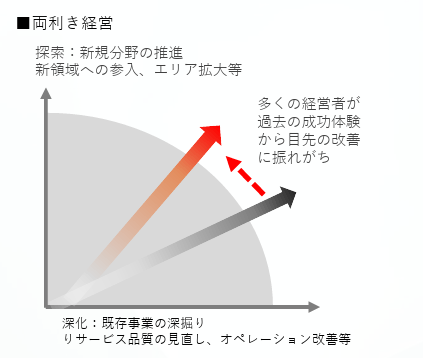 既存事業の効率化(深化)と新規事業の開拓(探索)を両立させる、