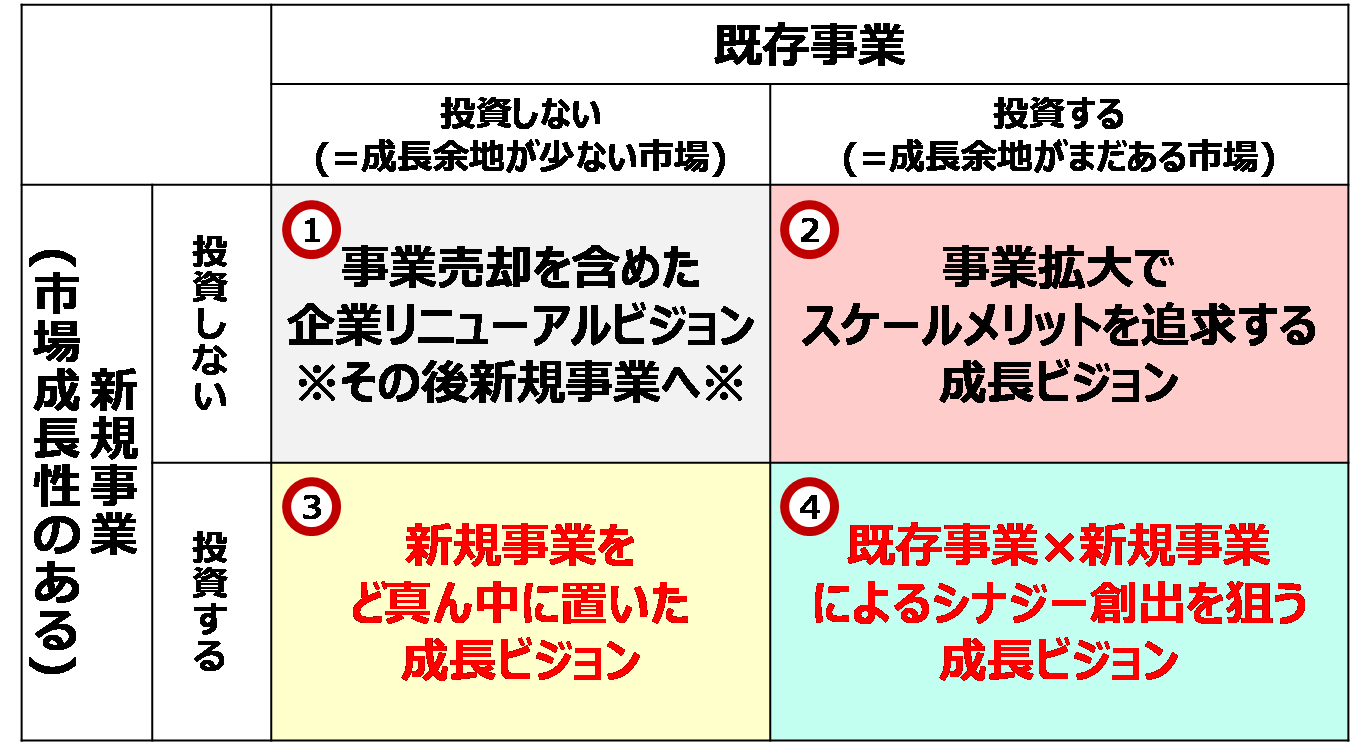④「既存事業×新規事業によるシナジー創出を狙う成長ビジョン」構築へ