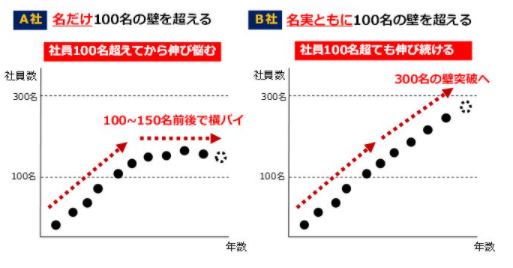 社員100名超えてからも順調に伸びて300名超えに向かう「B社」。