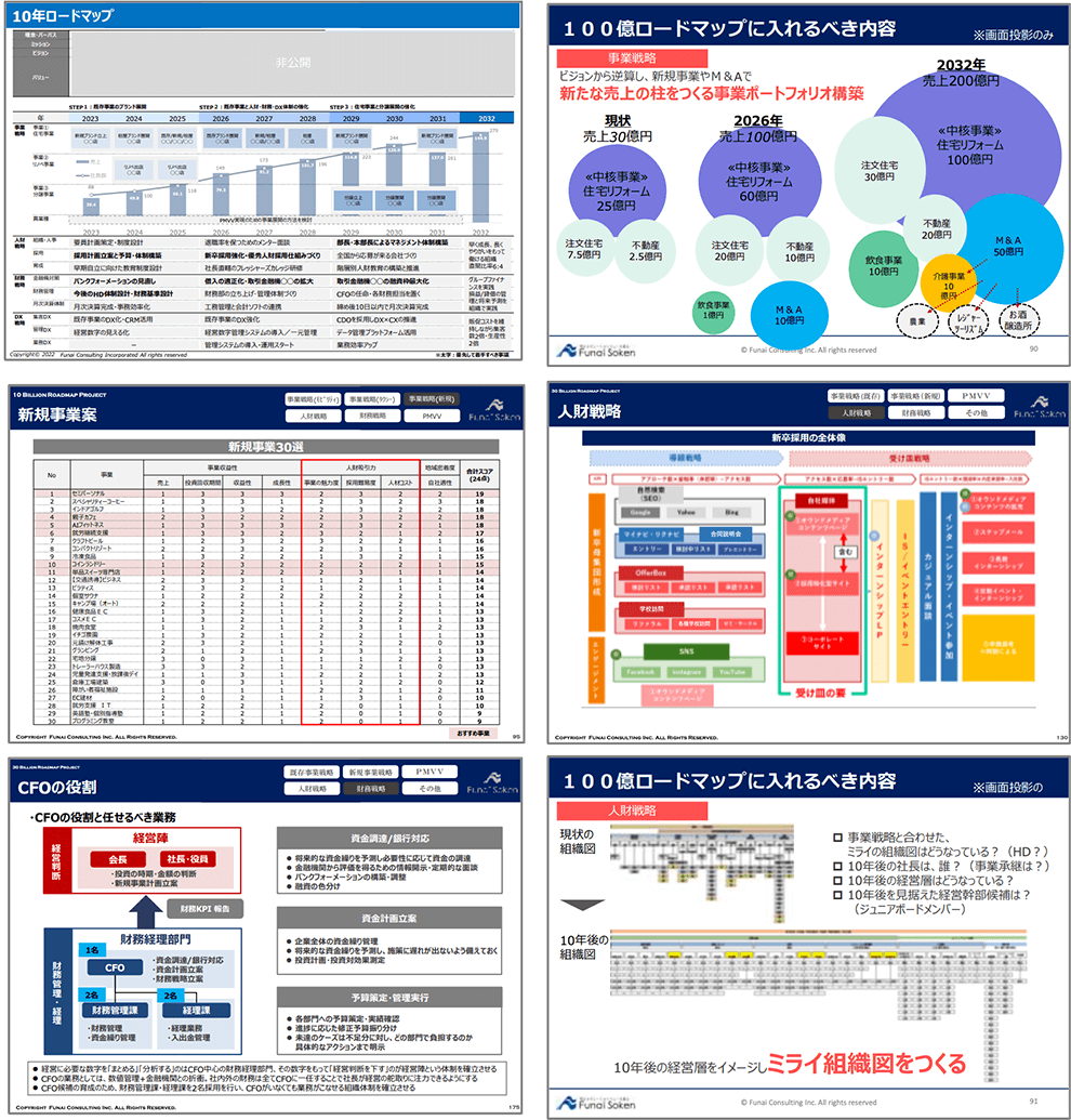 | 船井総研ではこれら100億企業化®のツボを押さえた事業計画=「100億企業化®ロードマップ」を策定 | |||
