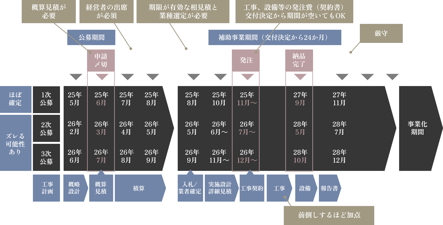 今後の成長加速化補助金のスケジュールを把握し、早期に準備をする事が採択率UPへ繋がる